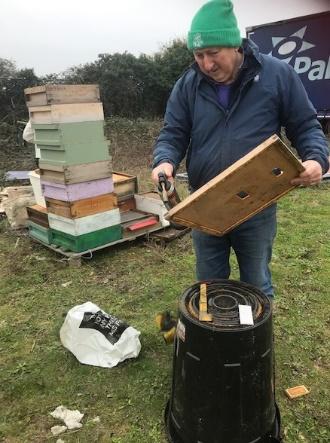 In the second year…………… your equipment is gummed up with propolis and brace comb, wax moths have left a disgusting mass of webbing and frass on your stored comb. Your small colony is now 60 thousand bees and have turned aggressive, you have several stings. You can’t find your queen, and realised too late that you have lots of swarm cells then half your bees end up in the neighbours chimney. The last straw is that all this effort and there is no honey!